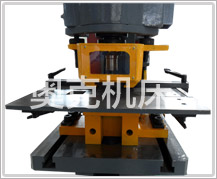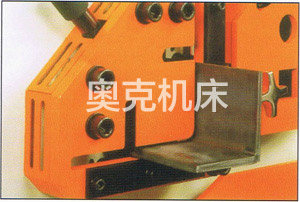 | 沖孔位置  沖孔模板上有大的可視窗口,旋開式設(shè)計更容易操作。有標(biāo)尺和止支器的兩塊大的測量板是標(biāo)準(zhǔn)設(shè)施?梢钥焖俑淖兊倪B接螺母和連接套筒可以快速地復(fù)位和改變。  | 開槽位置  特別的設(shè)計可以非常卓越地切割角材和條鋼。電子聯(lián)鎖安全裝置保證了更大的操作器安全。通風(fēng)裝置保證了更大的操作器可視度。三個測量止支器保證了精確的定位。  |